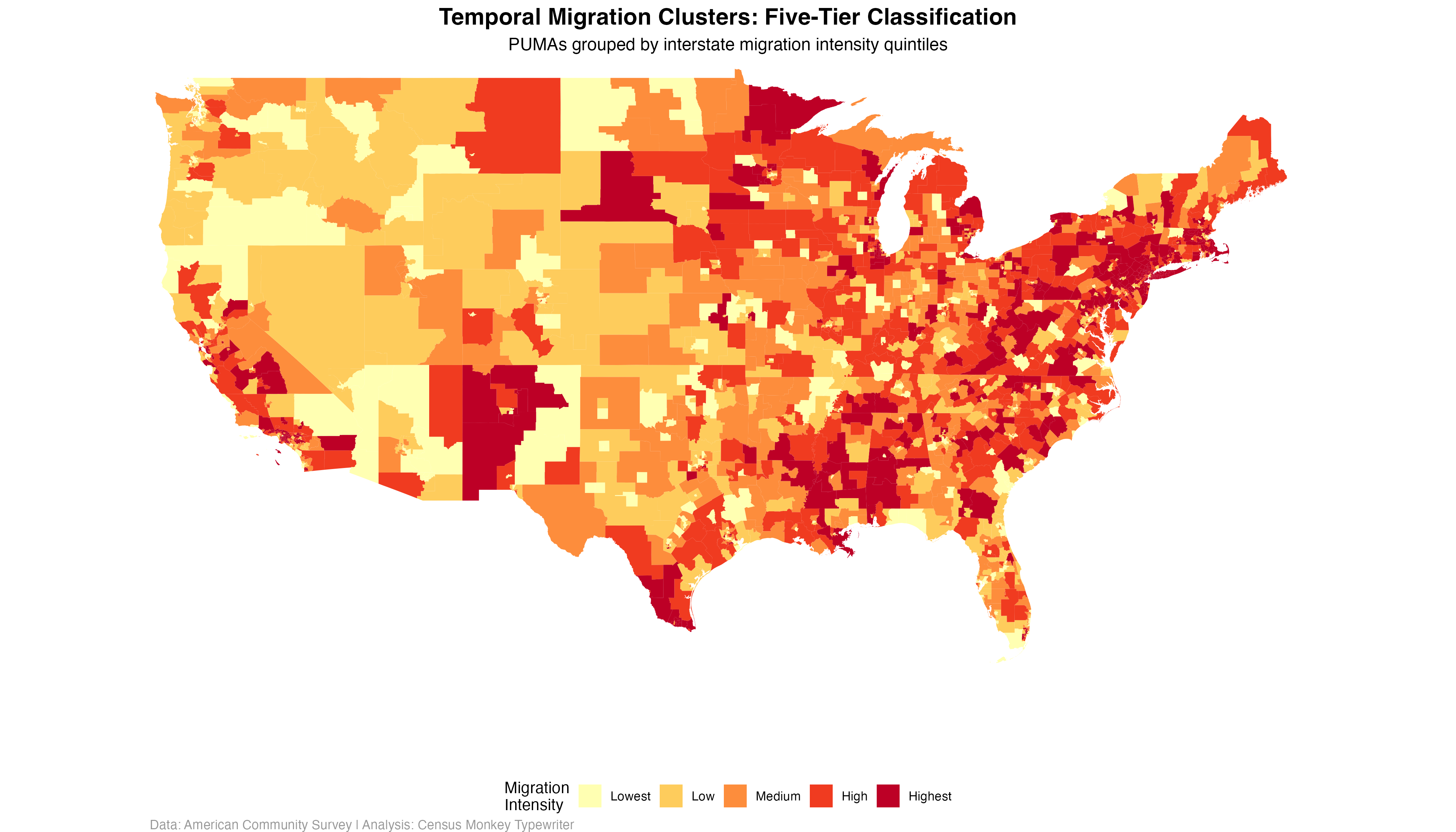 Figure 3: Migration Quintile Clusters - Five-tier classification reveals distinct spatial patterns in migration intensity levels across continental US.