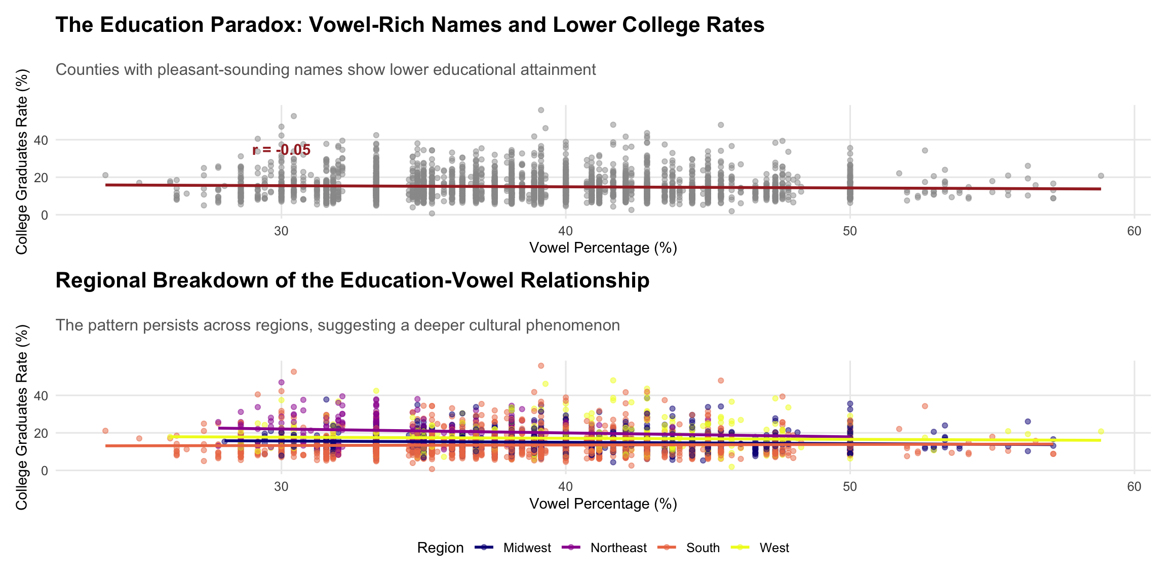 Here lies the study’s most intriguing paradox: vowel-rich counties show lower educational attainment rates. This -0.050 correlation suggests that phonetic pleasantness might correlate with different cultural values—perhaps prioritizing community harmony over academic achievement, or reflecting historical settlement patterns where educated elites chose more “serious-sounding” locations.